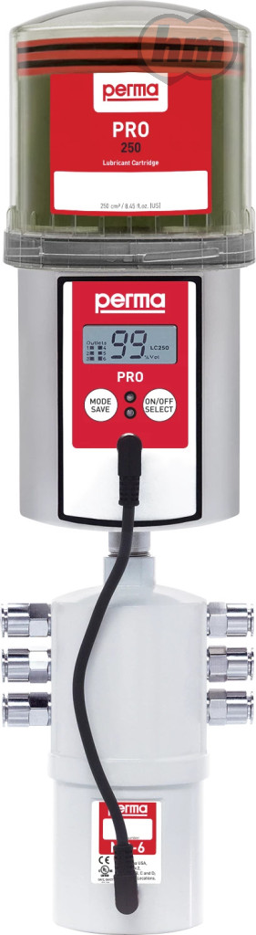A perma PRO MP-6 egy akkumulátoros többpontos kenőrendszer. A felhasználó választhat 250 cm³ és 500 cm³ LC egységméretek közül. Minden perma PRO programozható napokban, hetekben vagy hónapokban történő kenésre, legfeljebb 2 éves maximális kenési idővel. Az MP-6 elosztó közvetlenül, nyomáscsökkenés nélkül bocsátja ki a zsírt, és lehetővé teszi a csőhosszabbítók 5 m-es használatát.